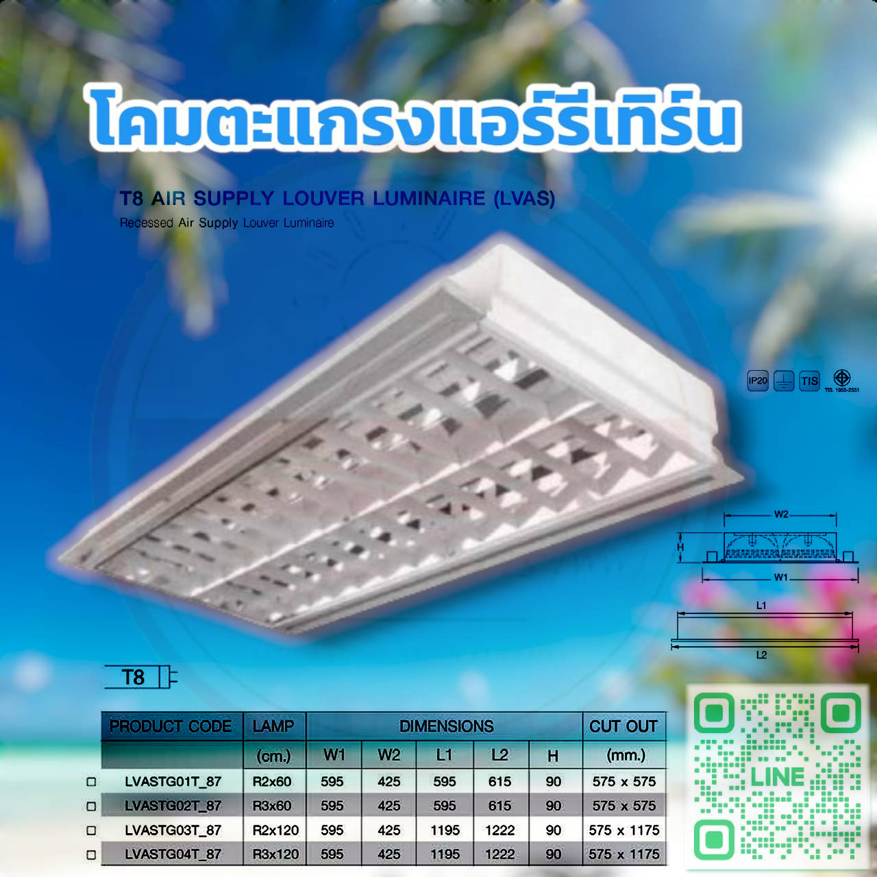 โคมอาคารพานิชย์แอร์รีเทิร์น2xT8 ขนาด18วัตต์,